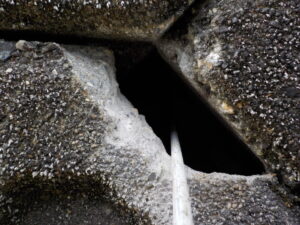 石垣や石積みの、モルタルやコンクリートの目地が劣化していきます。